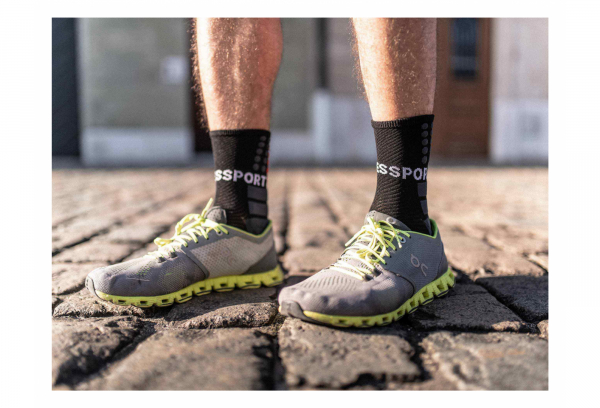 Los puntos 3D más gruesos de lo habitual absorben un máximo de golpes y vibraciones alrededor de la pierna y el tobillo para reducir el dolor. En la parte delantera y media del pie, los puntos 3D adicionales estimulan la circulación sanguínea y aumentan el agarre del pie en el zapato. Se combinan con un soporte de arco para evitar cualquier movimiento del tejido, reduciendo aún más el riesgo de ampollas. Además, unas fibras específicas previenen las sensaciones de sobrecalentamiento y ardor. Por último, la puntera se revisa y refuerza para evitar una panoplia de uñas multicolores después de su recorrido o viaje por carretera.
