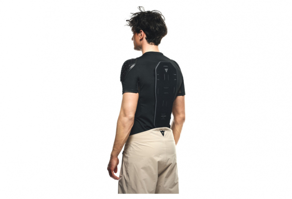 La familia de protectores Dainese Rival está diseñada para ofrecer la máxima resistencia y protección, con la libertad única de pedalear sin restricciones. El maillot de protección Dainese Rival Pro Tee ofrece el más alto nivel de protección para la espalda en una prenda cómoda y ligera que permite la máxima libertad de movimiento y pedaleo. La protección de espalda Auxagon garantiza la máxima seguridad. Inspirado en la geometría de los materiales auxéticos que se encuentran en la naturaleza, ofrece una protección de nivel 2 contra los impactos más violentos, al tiempo que deja una gran libertad de movimiento, acompañada de una ligereza y ventilación superiores. Los protectores auxiliares también se extienden a los hombros, el pecho y las costillas falsas para cubrir las áreas más expuestas al impacto. El maillot pasa casi desapercibido y desaparece por completo debajo del atuendo gracias a su forma cónica y al diseño minimalista de los protectores. El corte largo permite llevarlo cómodamente dentro de pantalones o shorts, asegurando la máxima estabilidad de protección en cada etapa de la actividad. Su usabilidad es simple e inmediata gracias a la práctica cremallera lateral, que hace que sea fácil de poner y quitar, incluso si transpiras después de una actividad intensa.